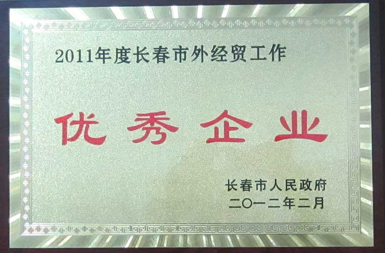 長春市政府2011年度長春市外經(jīng)貿(mào)工作優(yōu)秀企業(yè)
