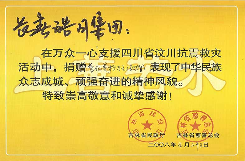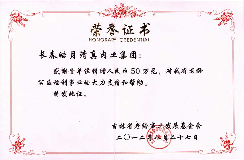 吉林省老齡事業(yè)發(fā)展基金會省老齡公益福利捐贈50萬榮譽(yù)